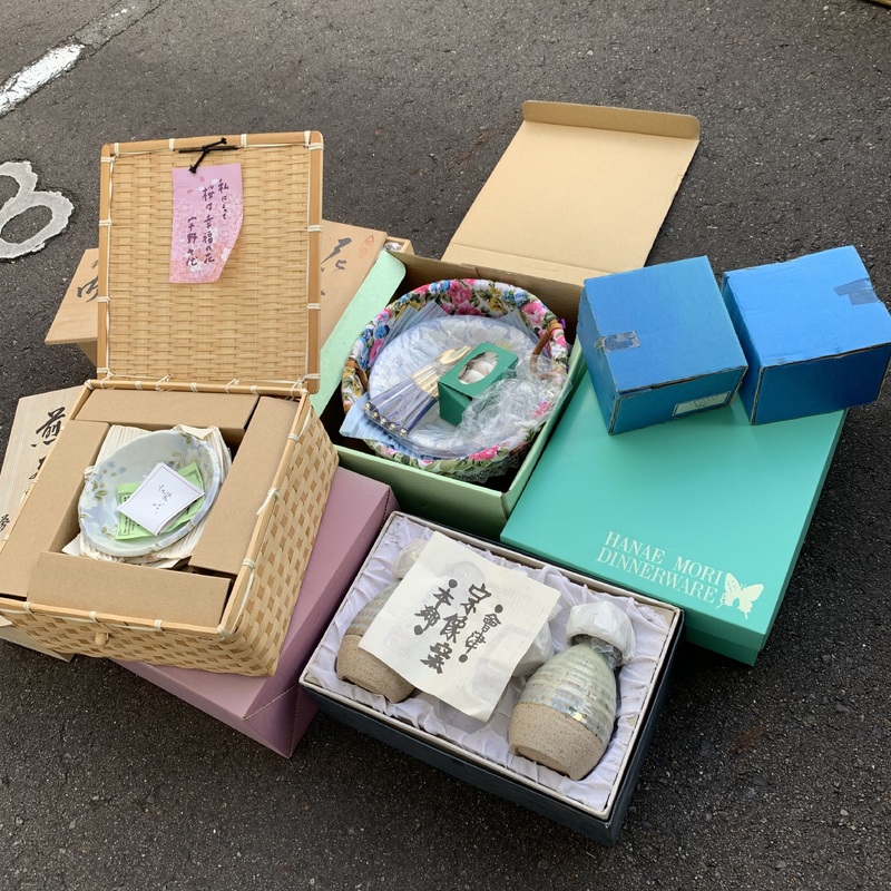 画像はほんの一部ですが、木彫りの置物・食器・家具・ギフトや引出物・タオル・布団カバー・花台・工具・骨董品…他多数を出張買取させていただきました🙇♀️